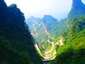 天門山,距市區(qū)僅8公里,海拔1518.6米,是張家界的文化圣地,被尊為“張家界之魂”,有湘西第一神山的美譽。山體孤峰高聳、氣勢臨空獨尊,世界最高海拔的天然穿山溶洞——天門洞,懸于千尋素壁之上,成為奇絕天下的勝景,也成就了當(dāng)?shù)厣詈瘛⒋髿獾摹疤煳幕焙汀跋缮轿幕。占地萬余平方米的天門山寺,自明朝以來香火鼎盛,是湘西的佛教中心!疤扉T洞開、鬼谷顯影、獨角瑞獸”等六個千百年來的難解之謎,渲染著撲朔迷離、神秘出塵的氣氛。 天門山還是張家界的第二個國家森林公園,擁有世界罕見的高山珙桐群落,山中四季野趣盎然,春有竹櫸斗翠,夏擁飛瀑疊云,秋至層林盡染,冬來迭嶂團(tuán)雪,變幻多姿,深遠(yuǎn)有致,宛如一座美不勝收的神仙花園。天門山是集神奇獨特的地質(zhì)外貌、歷史悠久的宗教文化、異彩紛呈的人文勝跡、豐富寶貴的自然資源于一體的旅游度假勝地。飛跨7.2公里的客運索道,以世界第一的長度,令游客從城市花園直達(dá)原始空中花園,擺脫都市喧囂浮躁,感受天人合一的明澈寫意,從而擁有終身難忘的旅游體驗。