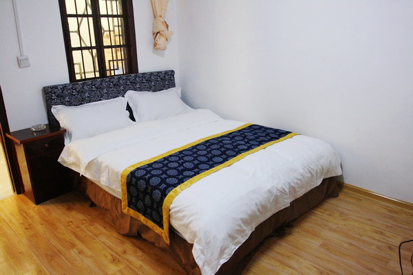 對了,驢友大廳還準備了臺電視,晚上大家可一起欣賞節(jié)目,今年的足球世界杯可一起為喜歡的球隊邊喝彩邊喝酒,還準備了幾張小木桌子及若干小木椅子,白天可以搬在屋外院子中邊曬太陽邊喝茶聊天或打牌,晚上可邊欣賞星星邊吃西瓜。    房間內(nèi)除了床上用品是準四星標準配置外,床尾單是按土家印花布定制的,有民俗特色,電視、獨立衛(wèi)生間、飲水機等齊全,1.2米的床,淡黃色溫馨墻紙配杉木地板,墻上配原木相框及土家印花或銀飾配件,還在床頭柜上留個小小的厚厚的本子,記錄一路下來住在這個房間自助游客的故事。     房間的命名,除了用數(shù)字命名外,也配以景點名字,如,101號房也叫跳魚潭,102號房也叫紫草潭,103號房叫雙龜探溪等等,相應房間內(nèi)掛上一副其景點的美圖,一樓上二樓那片大大的墻,為照片墻,游客的照片,我們的照片,旅館的照片,圍繞的整片墻,過道上及兩側(cè),掛上長長的大紅燈籠,掌柜的每天和來自各地不同的游客們交流,傳授他們張家界和鳳凰自助游的獨門秘籍,晚上一起吃吃喝喝,說說笑笑。