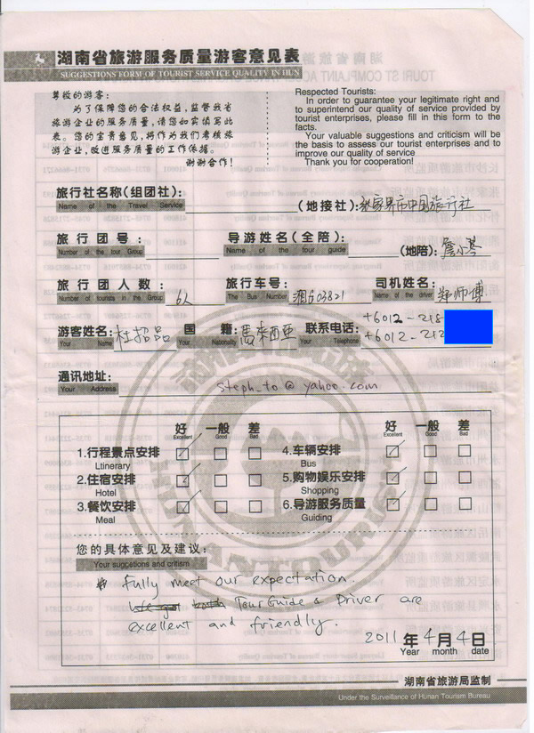 馬來西亞杜先生一行6人旅游質量回饋:我們趕到很滿意,導游很優(yōu)秀很體貼善良!