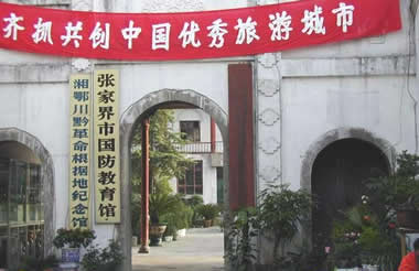 歡迎各位來賓到湘鄂川黔革命根據(jù)地紀(jì)念館參觀。這里原系民國7年(公元1918年)芬蘭牧士建的天主 堂,3棟共15間木結(jié)構(gòu)平房,四周有磚墻環(huán)護(hù)。1934年11月24日,中國工農(nóng)紅軍二、六軍團(tuán)在任弼時、賀龍、肖克、王震等領(lǐng)導(dǎo)下,一舉解放大庸縣城,于26日成立臨時省委,12月1日在天主堂內(nèi)成立湘鄂川黔省革命委員會,領(lǐng)導(dǎo)湘鄂川黔革命根據(jù)地31個縣的反圍剿斗爭,沉重地打擊了國民黨反動派和地方封建勢力,為中華民族的解放事業(yè)作出了卓越貢獻(xiàn),在中國人民革命斗爭史上寫下了光輝燦爛的一頁。為緬懷先烈功績,弘揚(yáng)革命精神,中共張家界市永定區(qū)委和區(qū)政府于91年夏發(fā)動募捐修復(fù)湘鄂川黔省委、省軍區(qū)、省革命委員會舊址,并新建紀(jì)念館,于1993年12月26日落成開館。 紀(jì)念館占地面積2800平方米,其中建筑面積1600平方米。東頭是三堵矮墻圍著的一棟木平房,三間小屋曾住過任弼時、賀龍、肖克,黑漆桌上的桐油燈作證,一代英杰曾在這里徹夜運(yùn)籌。西頭是可容納200余人的省委禮堂,當(dāng)時省委擴(kuò)大會和省直各部門的會議均在此召開,現(xiàn)已辟為將軍館,166位在湘鄂川黔革命根據(jù)地留下英雄足跡的新中國將帥的照片掛滿墻壁。紀(jì)念館大門左右,一字排開11間辦公室,當(dāng)年3大機(jī)關(guān)13個直屬部門均在此辦公。庭院正中是根據(jù)我國著名雕塑家潘鶴的作品《艱苦歲月》鑿制而成的一尊雙人石像,小紅軍抱著高過頭頂?shù)牟綐,依偎在橫吹短笛的老紅軍膝頭,似在入神地傾聽。雕像后面是紀(jì)念館主樓,內(nèi)設(shè)三個展室,陳列著223幅大型圖片和100多件革命文物,再現(xiàn)了根據(jù)地的光輝斗爭史,反映了根據(jù)地軍民艱苦卓絕的革命歷程和高尚情操。肖克將軍為紀(jì)念館題寫了館名。 第一部分 湘鄂川黔邊根據(jù)地的初創(chuàng) 193年11月,由于王明“左”傾路線錯誤和敵人的大舉進(jìn)攻,湘鄂西革命根據(jù)地全部喪失,紅三軍在湘鄂西中央分局夏曦、賀龍、關(guān)向應(yīng)的領(lǐng)導(dǎo)下不得不轉(zhuǎn)戰(zhàn)鄂川邊。 12月19日,湘鄂西中央分局聽湖北咸豐大村召開會議,決定“創(chuàng)建湘鄂川黔邊新蘇區(qū)”。此后,紅三軍在湘鄂川黔邊轉(zhuǎn)戰(zhàn),尋找立足點(diǎn)。 1934年5月,紅三軍西渡烏江,進(jìn)入貴州。6月19日,湘鄂西中央分局在貴州沿河楓香溪召開會議,決定在黔東創(chuàng)建根據(jù)地。7月21日黔東特區(qū)革命委員會成立。黔東根據(jù)地的建立,為紅二、六軍團(tuán)會師和湘鄂川黔根據(jù)地的形成創(chuàng)造了條件。 第二部分 湘鄂川黔邊根據(jù)地的全面形成 1934年10月,紅六軍團(tuán)經(jīng)過艱苦轉(zhuǎn)戰(zhàn),進(jìn)入黔東,24日,與紅三軍在印江木黃勝利會師。會師后紅三軍恢復(fù)紅二軍團(tuán)番號,兩軍團(tuán)聯(lián)合行動,由賀龍、任弼時、關(guān)向應(yīng)統(tǒng)一指揮。紅二、六軍團(tuán)會師后,為了策應(yīng)中央紅軍長征與建立湘鄂川黔邊根據(jù)地,決定發(fā)動湘西攻勢。 1934年10月28日,紅二、六軍團(tuán)從四川南腰出發(fā),向湘西挺進(jìn)。11月7日,攻克永順縣城,湘敵何鍵急令湘西軍閥陳渠珍派兵堵剿,陳糾集三個旅,約一萬人的兵力向永順撲來。紅軍決定采取誘敵深入、聚而殲之的作戰(zhàn)方針,主動放棄永順縣城,退至城北90里的十萬坪地區(qū)設(shè)伏。16日黃昏,尾追之?dāng)尺M(jìn)入伏擊圈,我軍奮起痛擊,殲、俘敵3000余人。我軍乘勝追擊,24日占領(lǐng)大庸、桑植。12月7日,進(jìn)擊沅陵,17日包圍常德,攻下桃源。 由于湘西攻勢的勝利,促進(jìn)了新區(qū)工作的發(fā)展,紅二、六軍團(tuán)控制了永順、大庸、桑植的大部和龍山、保靖、桃源、慈利、常德等縣的一部,并占有大庸、桑植、永順等縣城,開辟了湘鄂川黔邊根據(jù)地。 第三部分 根據(jù)地省委的成立并領(lǐng)導(dǎo)人民開展革命斗爭 1934年11月26日,奉中共中央電示,在大庸成立了中共湘鄂川黔省委,任弼時為省委書記,賀龍、關(guān)向應(yīng)、夏曦、王震、肖克及張子意、劉士杰(后叛變)、周玉珠為省委委員,同時成立省軍區(qū),賀龍為軍區(qū)司令員,任弼時為政委。還成立了省革命委員會,賀龍為主席,夏曦、朱長清為副主席。至此,以大庸為中心的湘鄂川黔革命根據(jù)地正式形成。 蘇區(qū)省委成立之后,即著手領(lǐng)導(dǎo)開展建黨建政、土地革命和擴(kuò)紅等項工作,同時還進(jìn)行了必要的經(jīng)濟(jì)、文化教育、衛(wèi)生等方面的建設(shè),并取得了一定的成果,推動了根據(jù)地的鞏固和發(fā)展。 第四部分 反圍剿的激烈戰(zhàn)斗 湘鄂川黔根據(jù)地的建立和發(fā)展,特別是紅軍的主動出擊,給國民黨政府造成了新的威脅,蔣介石驚恐萬分,下令調(diào)集湘鄂兩省的軍隊,集中了11個師又4個旅,共40多個團(tuán),約11萬人的兵力,編成6個縱隊,在地方保安團(tuán)的配合下,對根據(jù)地發(fā)動“圍剿”。 針對敵人的瘋狂進(jìn)攻,我根據(jù)地軍民,同仇敵愾,嚴(yán)陣以待。1935年1月,敵軍向根據(jù)地進(jìn)攻,我紅軍主力班師大庸休整。2月上旬,紅軍在慈利設(shè)防正面阻擊郭汝棟縱隊失利,在大庸被李覺部乘機(jī)侵占。紅軍回師在大庸后坪雞公埡設(shè)伏再打李覺部縱隊