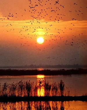 東洞庭湖自然保護區(qū) 東洞庭湖是我國列入《國際濕地公約》的六處重要濕地之一,每年有白鸛、白鶴、黑鸛、白鷺等255種國家級保護候鳥在這里越冬。其他地方難得一見的大鴇、白頭鶴、鴻雁、小白額雁、青頭潛鴨等稀有鳥類也經常在這里嬉戲,給平靜的洞庭湖增添了不少樂趣。